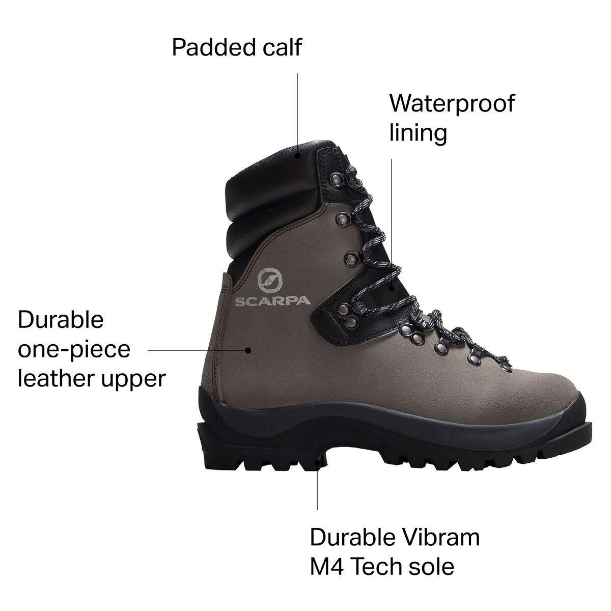 Ready for our toughest backpacking trips, Scarpa suited the Fuego specifically for Wildland fire crews, with a one-piece, Italian Crosta leather that’s waxed for long-lasting durability. By leaving out a rubber rand, Scarpa made sure the fire crews wouldn’t have to deal with rubber melting off the boot. The higher cuff provides proper support when you’re hauling a heavy load, and there’s a footbed and EVA midsole for underfoot comfort. The Vibram M4 Tech sole ensures the stability you need to cover miles and miles.